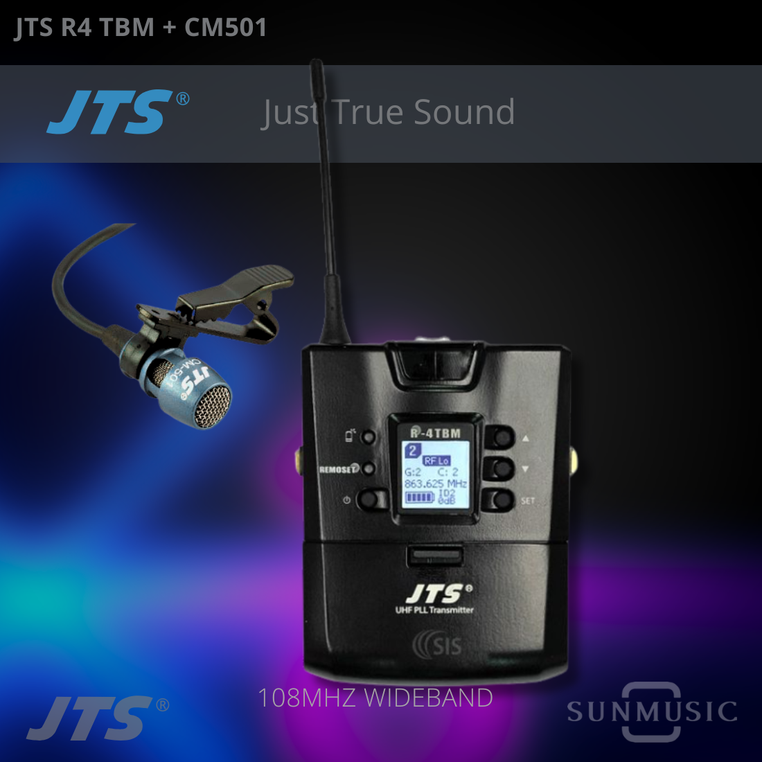 * Junto con varios micrófonos de instrumentos musicales JTS, micrófonos de diadema y micrófonos de clip de corbata, este bodypack es versátil para todas las aplicaciones.